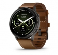 Venu 4 – 45 mm, sötétszürke, fekete szilikon- és barna bőrszíjjal